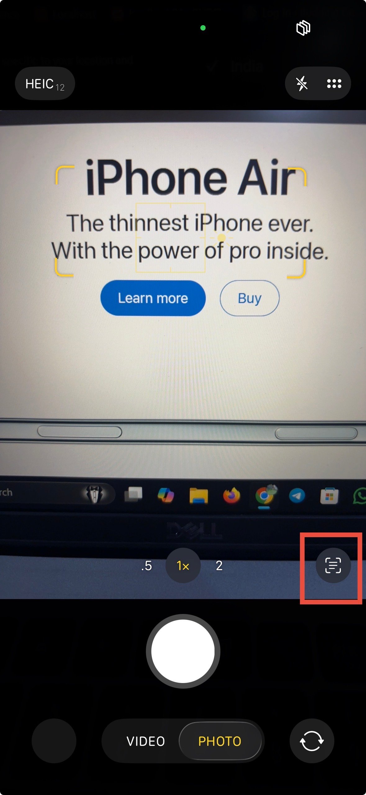 - When your iPhone detects text, you’ll see a yellow outline around it and a small Live Text icon (it looks like a viewfinder with lines).