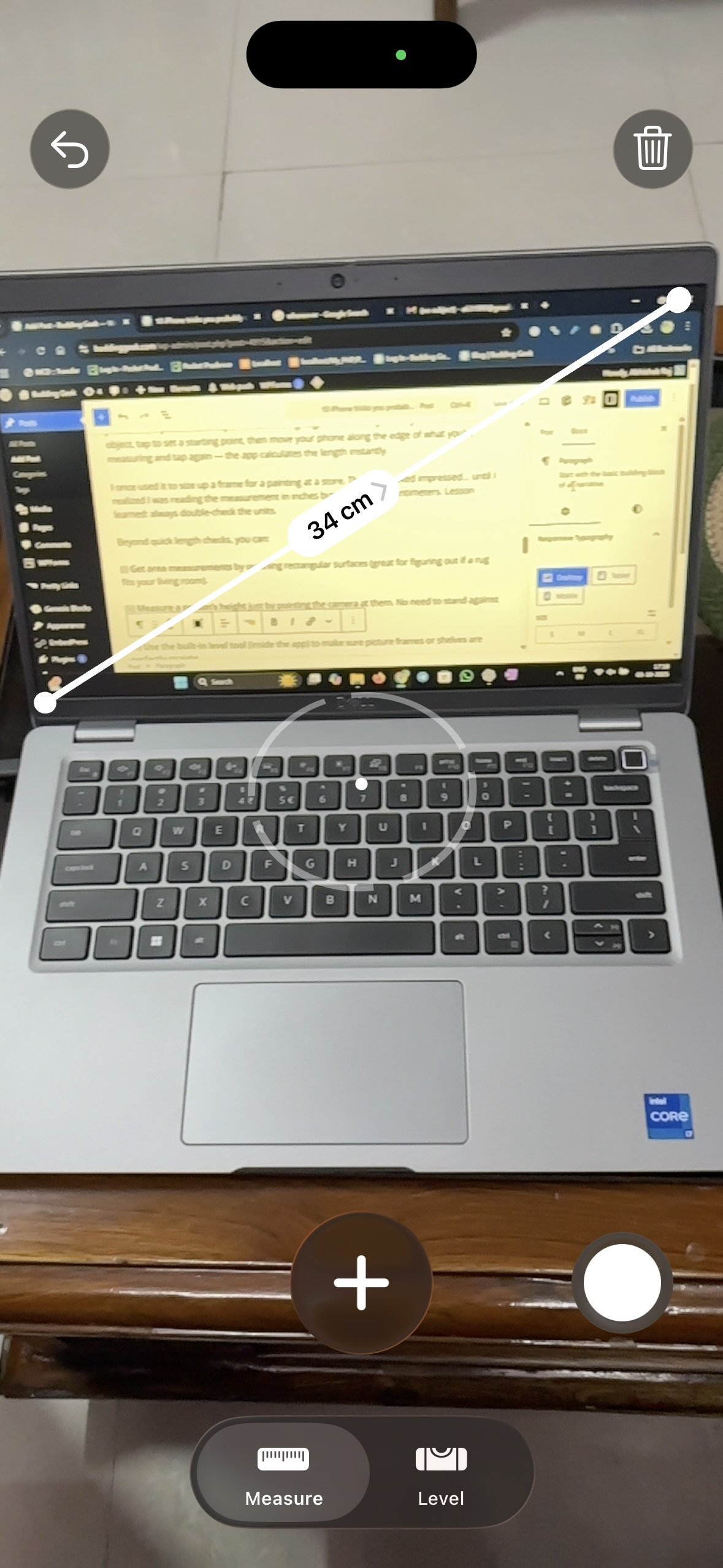 The Measure app is one of those iPhone tricks that hides in plain sight. It basically turns your phone into a pocket-sized tape measure using augmented reality. Point your camera at an object, tap to set a starting point, then move your phone along the edge of what you’re measuring and tap again. The app calculates the length instantly.