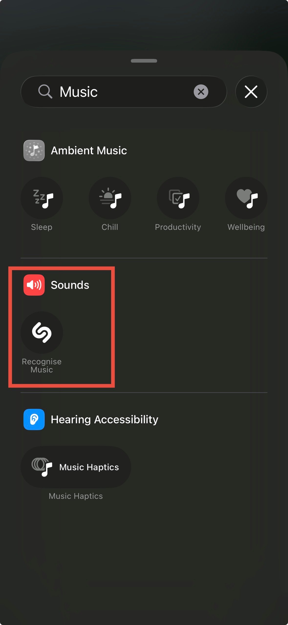 - Search for the keyword “Music” in the search and select “Recognise Music”.