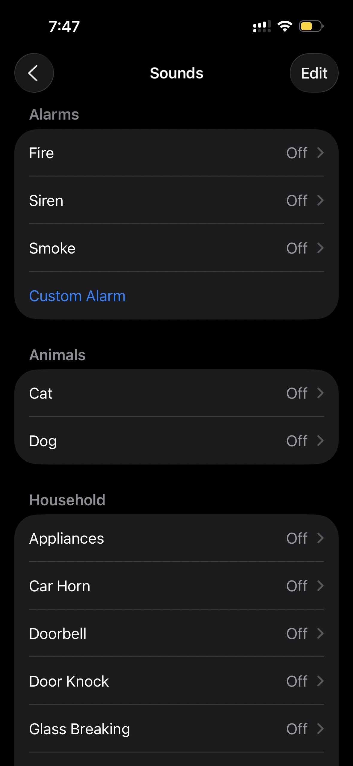 - Tap Sounds and choose which ones you want your iPhone to listen for.